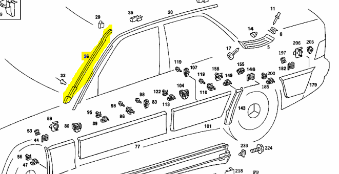 A2016980598 , 2016980598 , W201 Front left water deflector seal